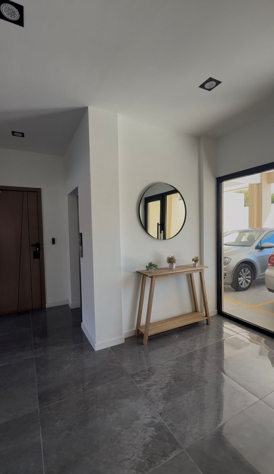Pisos y revestimientos en porcelanato de piezas grandes o similar calidad. Mesadas de mármol o granito negro. Anafe y horno eléctrico de primeras marcas