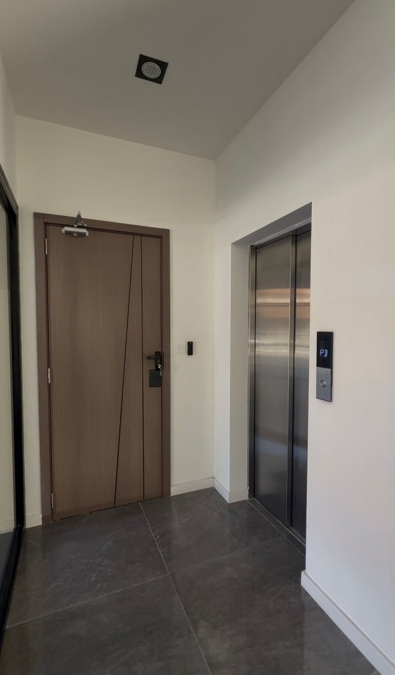 y revestimientos Ascensor de última generación con 7 paradas. Con capacidad para 7 personas (525kg) TERMINACIONES Cielorrasos de yeso proyectado. Revoque exterior proyectado 3 en 1. Balcones con barandas en aluminio. Portones de entrada a la cochera automatizados.
