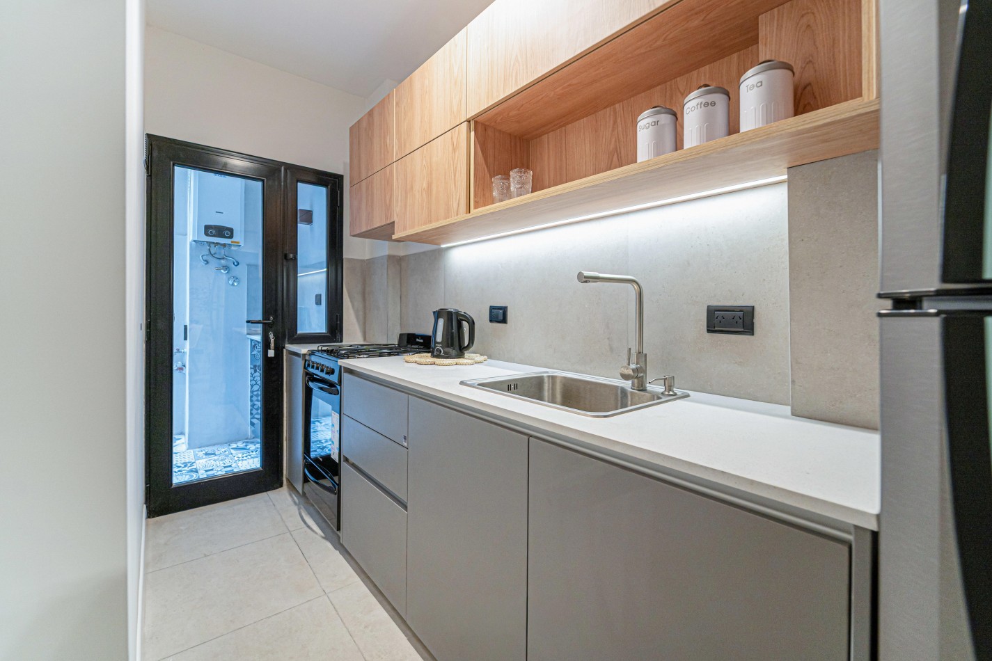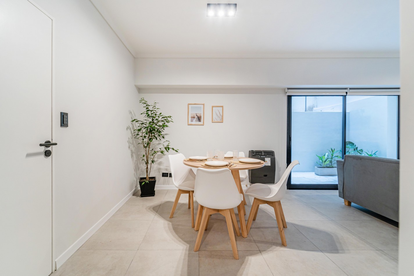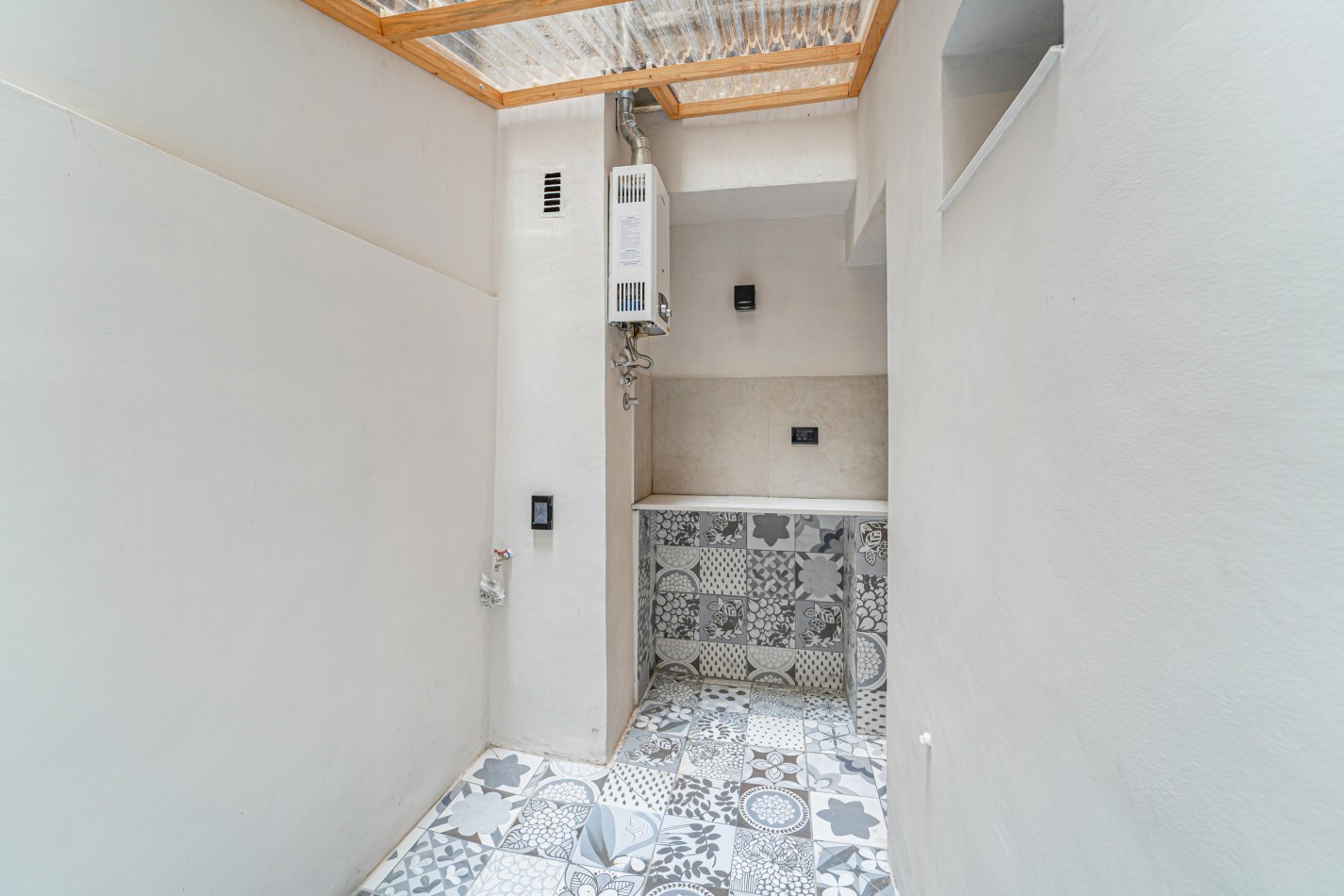 Entrando a la propiedad encontramos un amplio living comedor con patio interno, habitación con placard y cocina con salida a un segundo patio interno con espacio para lavarropas.