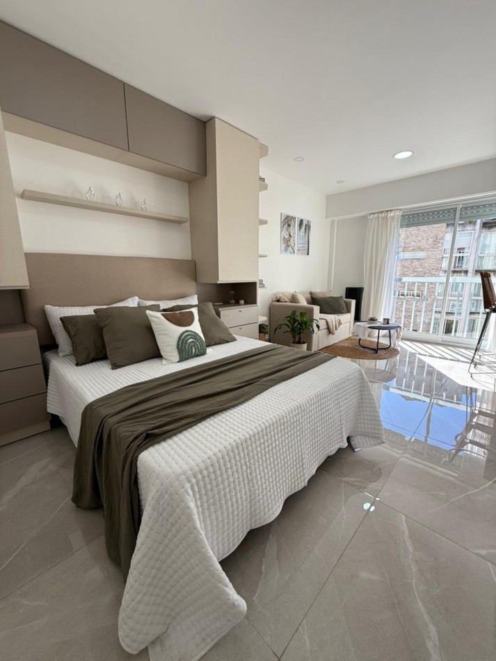 -Ambiente equipado con cama de dos plazas, placard a medida, sillón de dos cuerpos.