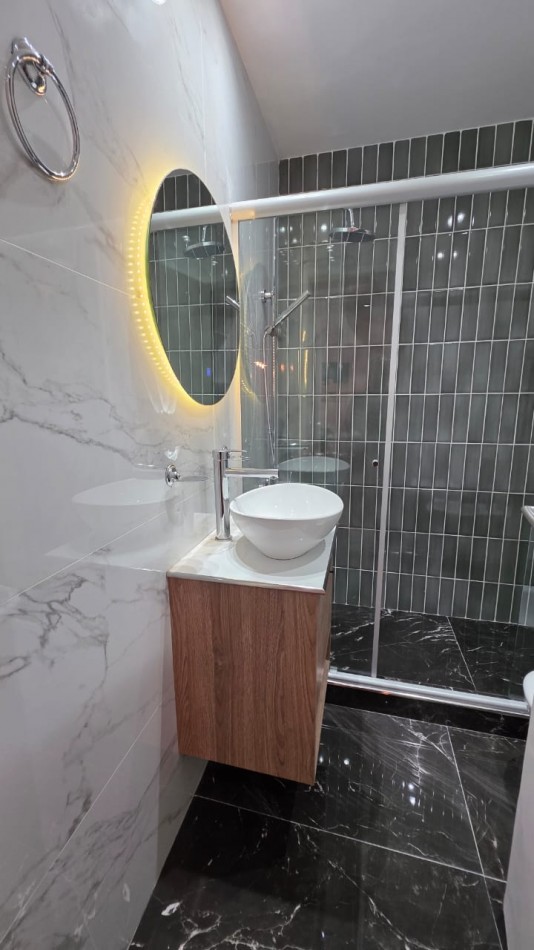 Dormitorio completo con piso de parquet y placard con luz led interior