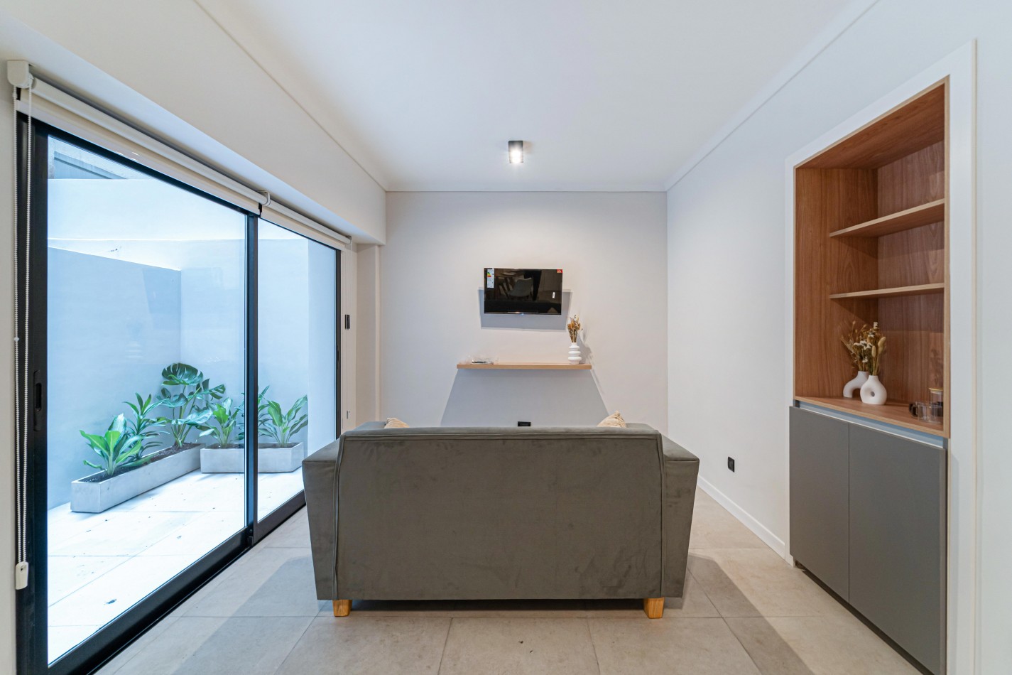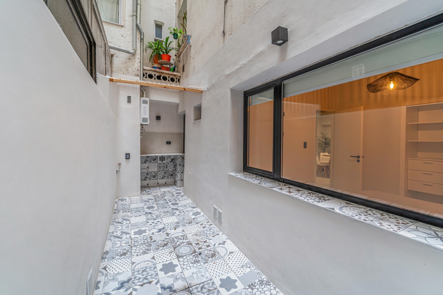 Entrando a la propiedad encontramos un amplio living comedor con patio interno, habitación con placard y cocina con salida a un segundo patio interno con espacio para lavarropas.