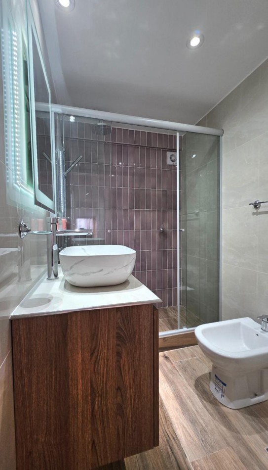 BAÑO COMPLETO CON MAMPARA CORREDIZA Y VIDRIO TEMPLADO.