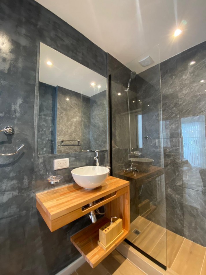 Dormitorio principal con salida al balcón y baño en suite, placard a medida