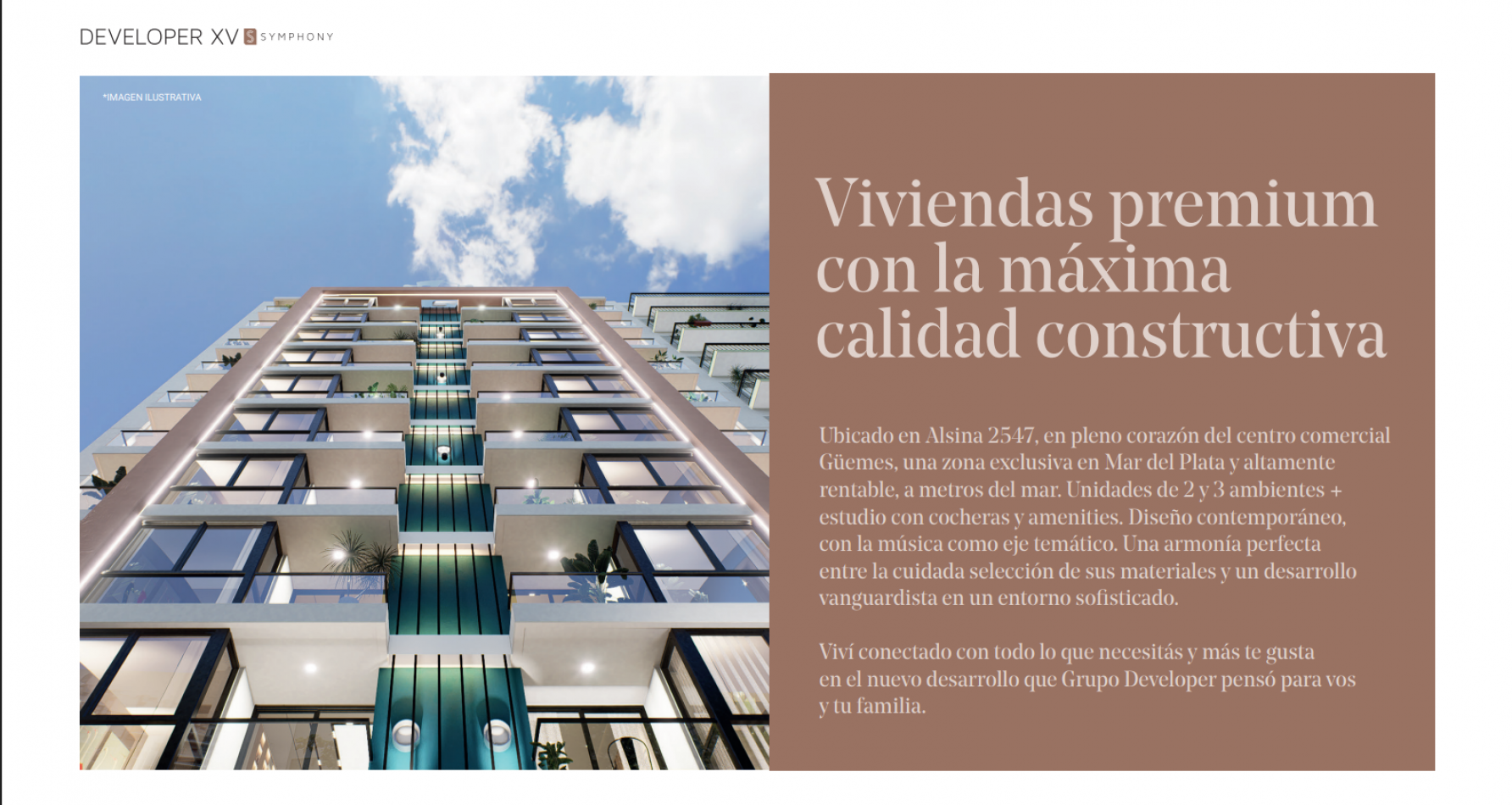 DEVELOPER XV SYMPHONY, el nuevo desarrollo de grupo developer, es una invitación a soñar juntos un espacio en donde poder vivir en ARMONIA con aquello que nos rodea.