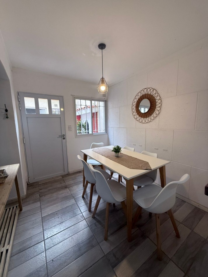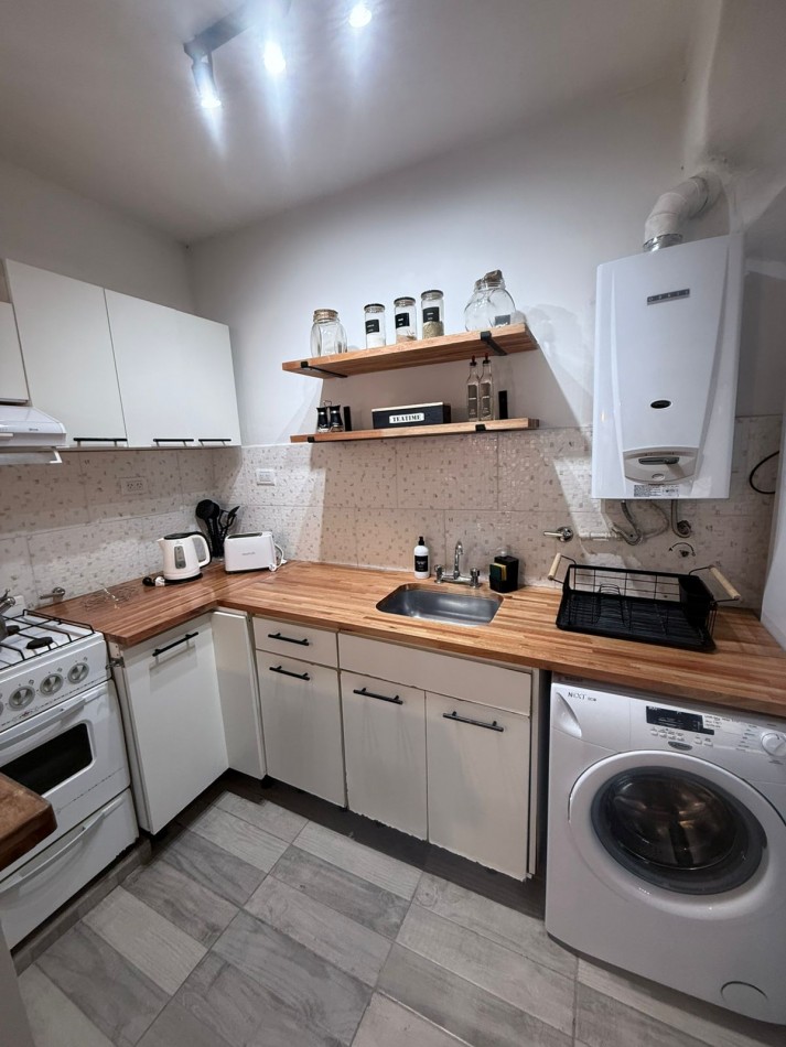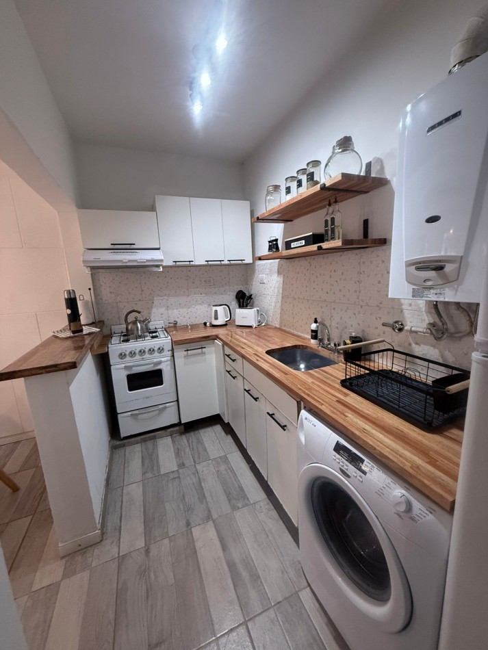 Sector de comedor con cocina semi integrada con conexión para lavarropas